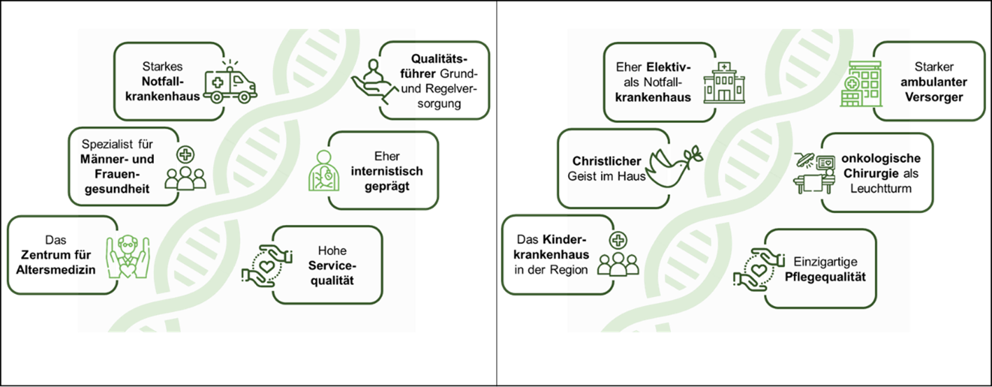 Die Medizinstrategische DNA ist also die Summe der Prägungen, die ein Krankenhaus bereits bei der Gründung und während entscheidender Phasen seiner Geschichte erhalten hat. Sie ist in einem Krankenhaus zwar an vielen Stellen „spürbar“ und in Teilen den unterschiedlichen Entscheidern auch bekannt – allerdings nur selten tatsächlich externalisiert und damit für einen Strategieentwicklungsprozess nutzbar.