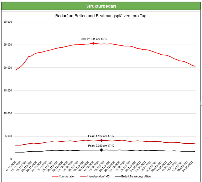 Allerdings könne man noch keine Vorhersage für das kommende Jahr machen, weil die Situation im Januar und Februar wesentlich davon beeinflusst wird, welche Lockerungen im Dezember stattfinden und wie sich die Menschen in der Weihnachtszeit verhalten. Demzufolge sei es durchaus wahrscheinlich, "dass wir im Februar nochmal neue Höchststände sehen", so der Krankenhaus-Berater.