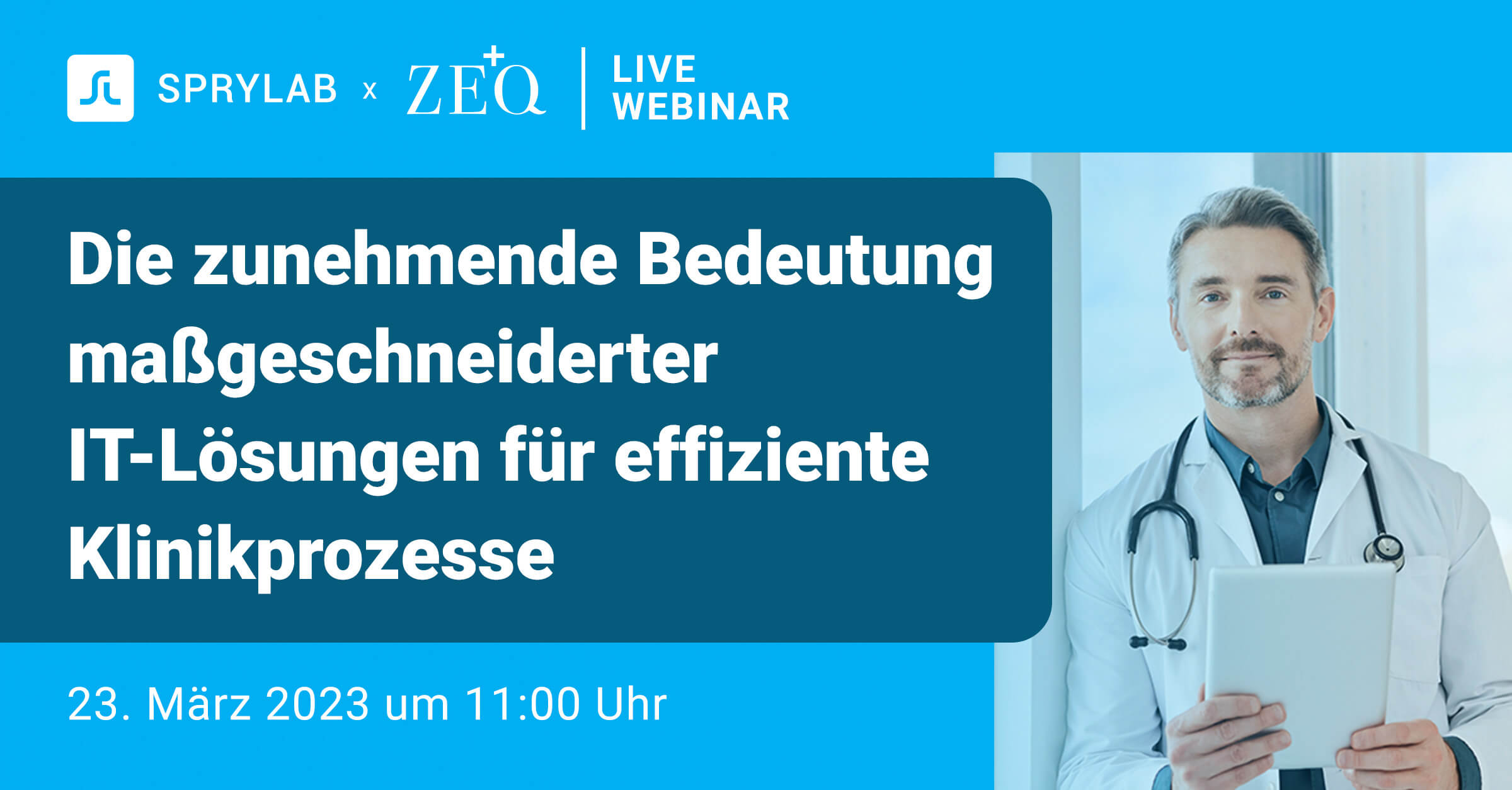 Wir veranstalten am 23. März 2023 zusammen mit SPRYLAB ein Live-Webinar zum Thema der zunehmenden Bedeutung maßgeschneiderter IT-Lösungen für effiziente Klinikprozesse.