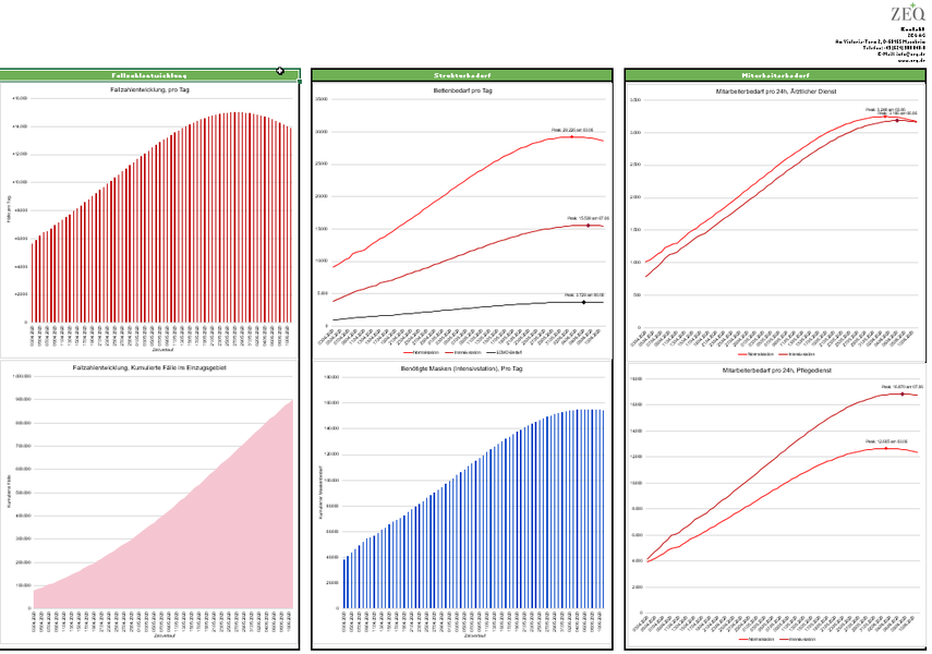 Damit erhalten Krisenstäbe und Entscheider im Krankenhaus eine Orientierungshilfe für ihre Entscheidungen zum Personal- und Materialeinsatz in den kommenden Tagen und Wochen.